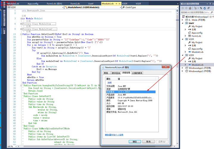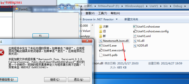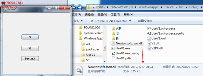 - 在使用项目引用V1的dll,然后再Debug中放入旧版本的Newtonsoft.Json.dll(该项目中没有引用任何版本的Newtonsoft.Json.dll)
