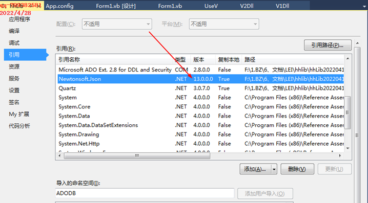 - 新建类库项目,V1DLL,引用旧版本的dll