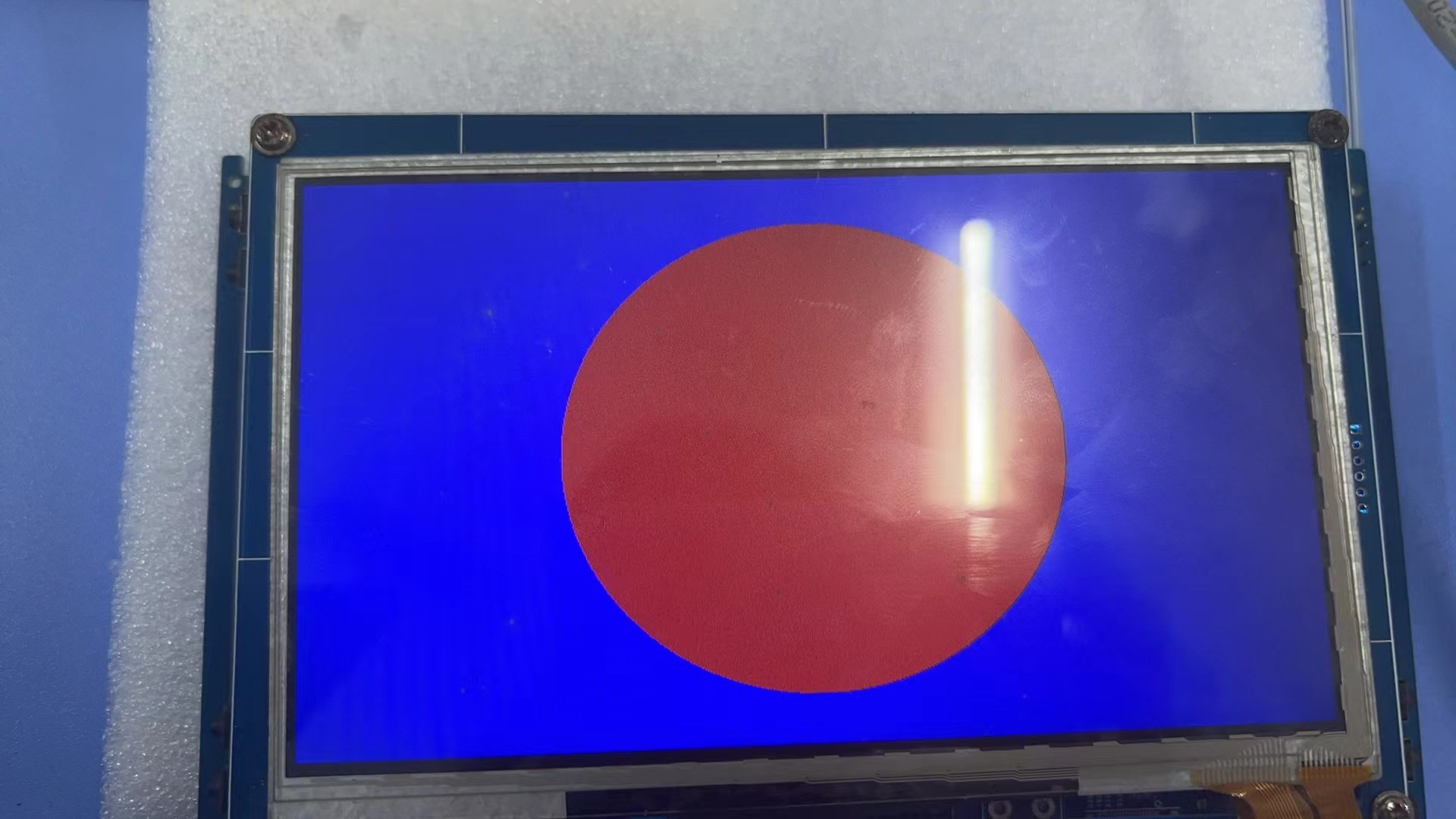 先写好两个for循环,然后定义x和y轴变量,定义初始化圆的半径圆心坐标(两个变量),还有缓冲区,这些数据可以用宏定义来更改代码效果,如屏幕大小或者圆的大小,目前未优化可移植性。这块代码难度在于嵌套的for循环是要做一个判断写入颜色的,判断依据是离圆心的距离小于半径的大小那么就写入目标颜色,在这之前要用i和j的数据,所以要用i和j的数据更新到x和y坐标轴上。接下来要用坐标轴判断是否在圆内,因为sqrt()函数参数是表达式出现了错误,所以用宏定义也是相同的,所以我是直接用三角函数关系判断像素点到圆心的距离,因为目前用不了sqrt()函数,所以这块if()里面的三角平方公式不是很直观。