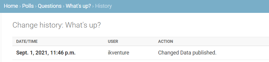 通过点击now更改时间后,点击右上角history界面可以看到页面中列出了时间戳和进行修改操作的用户名: