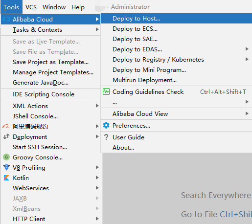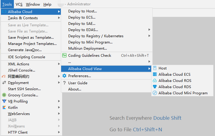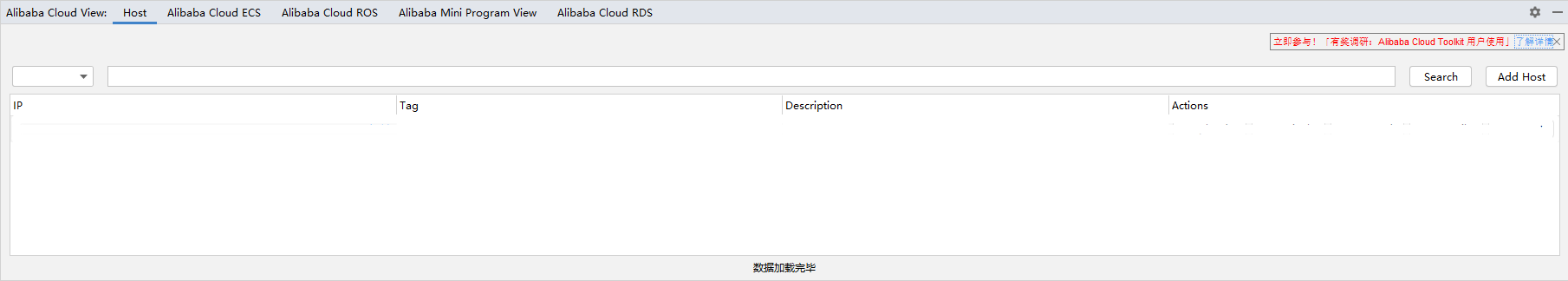 位置:Tools -> Alibaba Cloud -> Alibaba Cloud View -> Host