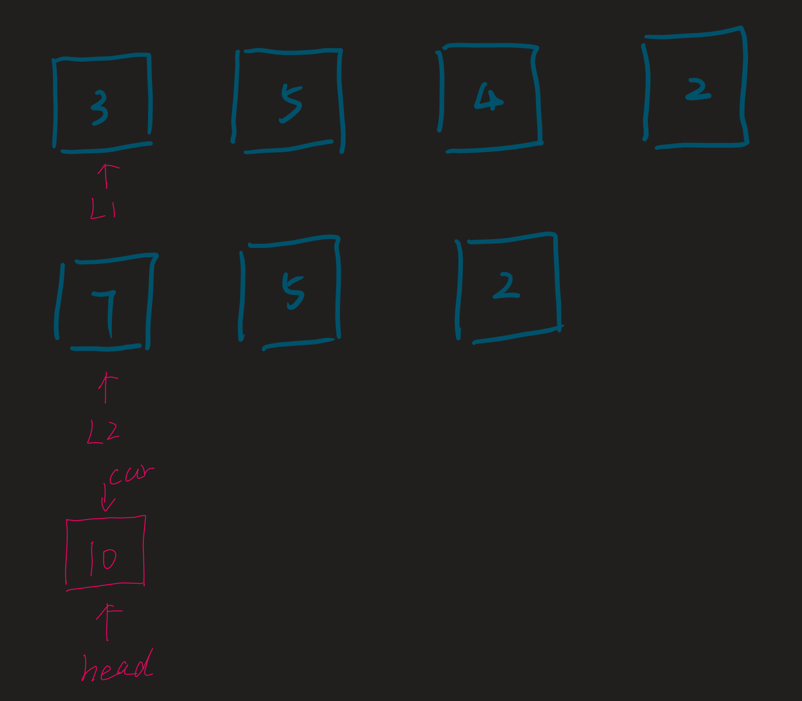 - 判断l2结果是否非空,如果不为空则说明l2更长,就把l2接续到l1末端,然后判断l1剩余元素是否仍有可能发生进位。