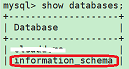 可以看到除了用户自定义的应用数据库外,还有系统建立的inforation_schema数据库。