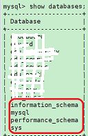 可以看到出去用户自定义数据库,还有另外4个系统建立的数据库information_schema/performance_schema/mysql/sys。