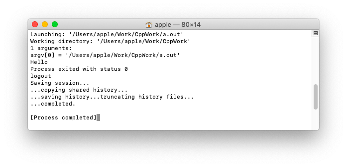 #include <iostream> using namespace std; int main() { cout<<"Hello"<<endl; }- 测试运行,在运行窗口可看到刚配置的"C/C++ Launch"任务,运行将弹出Terminal显示Hello以及一些辅助信息