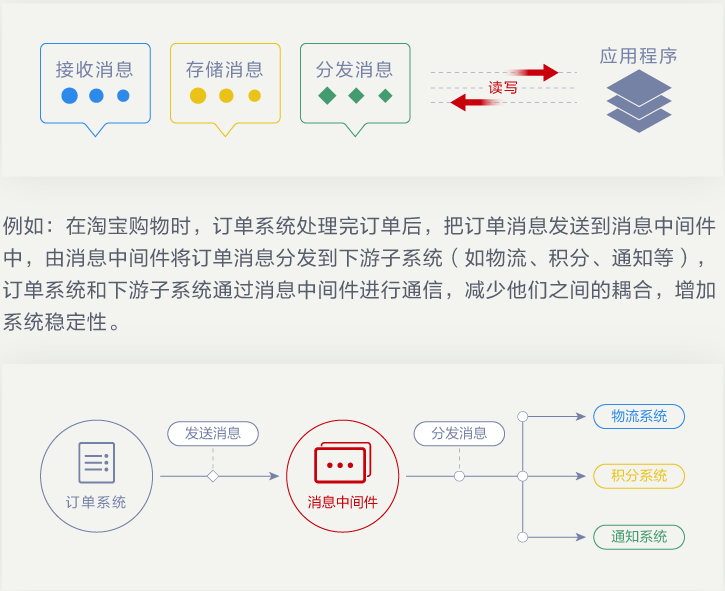 以电商秒杀、抢购等流量短时间内暴增场景为例。传统的做法是订单下单后,订单系统发送请求查询库存系统查询库存,等待库存系统返回库存结果给订单系统,此时若库存系统发生了故障,订单系统就无法获取库存数据,导致下单失败。该场景订单系统和库存系统高度耦合。