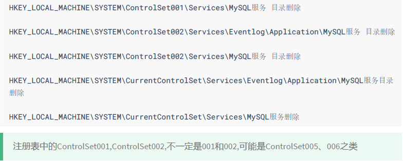 5.清理注册表(选做):清理完后MySQL服务就会被删除