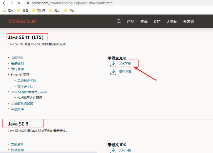 3、选择自己想要下载的jdk版本,我这里选择jdk11,一般大多数现在都是下载jdk8