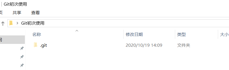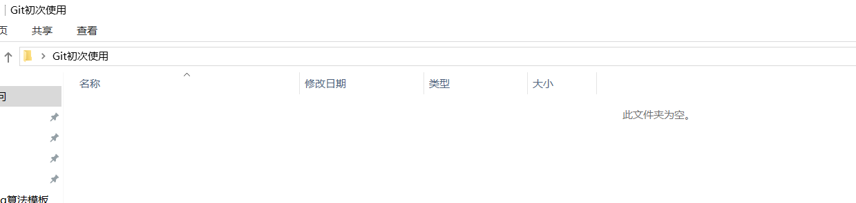在这里我首先创建了一个空文件夹,该空文件取名为"Git初始使用"。从下图可见在未用git init命令生成仓库时,文件夹内部无任何文件。