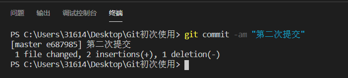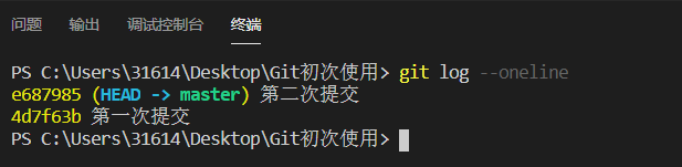 因为我一共提交了两次,所以会有两条记录。如果要查看以前的提交记录,那么就要使用git log这条命令。