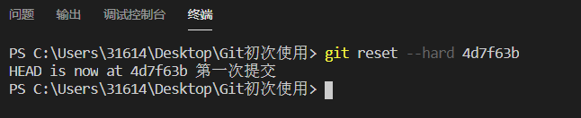 从提示中可以看到此时指针HEAD已经指向了第一次提交。