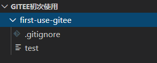 首先我在Gitee上创建了一个名为"Gitee初次使用"的远程版本库,里面包含了一个.gitignore文件和一个名为test的文件,另外test中的内容为"Gitee的初次使用."。