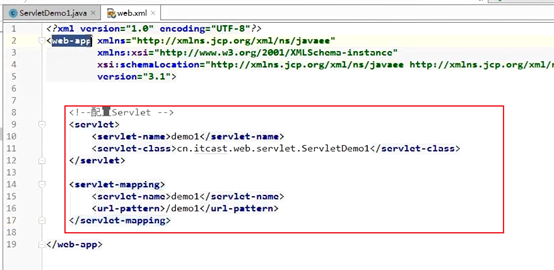 <servlet-class>cn.itcast.web.servlet.ServletDemo1</servlet-class>