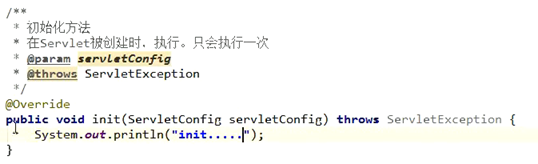 *Servlet的init方法,只执行一次,说明一个Servlet在内存中只存在一个对象,Servlet是单例的