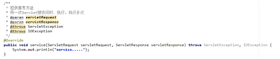 * 每次访问Servlet时,Service方法都会被调用一次。