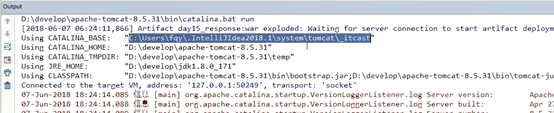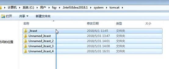 * 查看控制台的log:Using CATALINA_BASE: "C:\Users\fqy\.IntelliJIdea2018.1\system\tomcat\_itcast"
