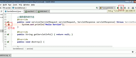 3. 断点调试:使用"小虫子"启动 dubug 启动