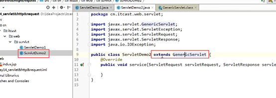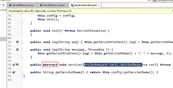* 将来定义Servlet类时,可以继承GenericServlet,实现service()方法即可
