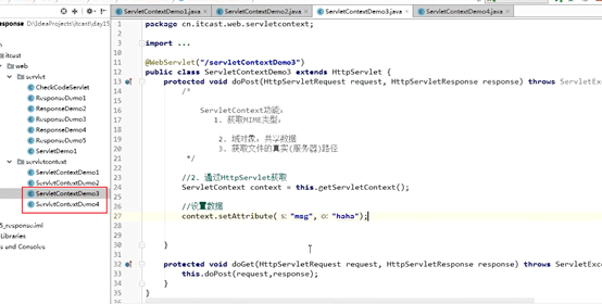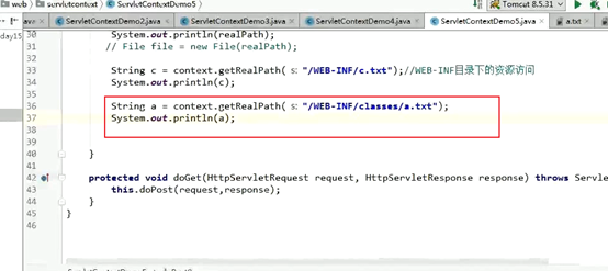 String a = context.getRealPath("/WEB-INF/classes/a.txt");//src目录下的资源访问