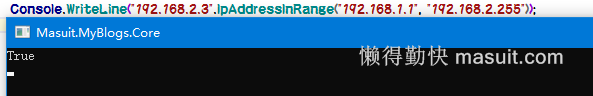 接下来直接测试192.168.2.3是不是在192.168.1.1-192.168.2.255这个网段了,肉眼一看,肯定是在这个地址段内,那看看代码的执行结果吧。