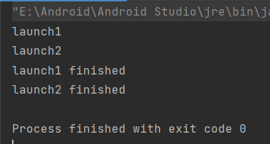 fun main() { runBlocking { launch { println("launch1") delay(1500) println("launch1 finished") } launch { println("launch2") delay(1500) println("launch2 finished") } } }