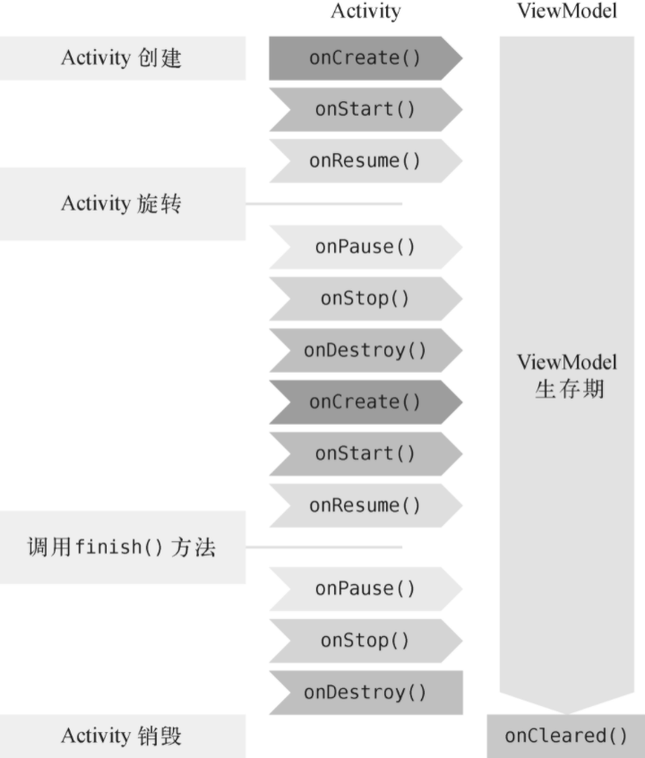 此外,ViewModel还有一个重要特性,当手机发生横竖屏旋转时,Activity会重新创建,里面的数据会丢失,而ViewModel不会被重新创建,只有当Activity退出时才会销毁。因此,与界面相关的变量存放在ViewModel中,不用担心发生旋转时数据丢失。
