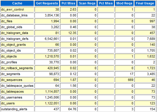 在实践中似乎没有看到row cache lock的共享锁定,基本是独占锁。也就是说数据字典发生了更新。