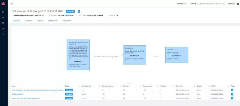 在Linux上单节点安装方式与cygwin一样,下载Apache Flink 1.9.0 for Scala 2.12,然后解压后只需要启动start-cluster.sh。