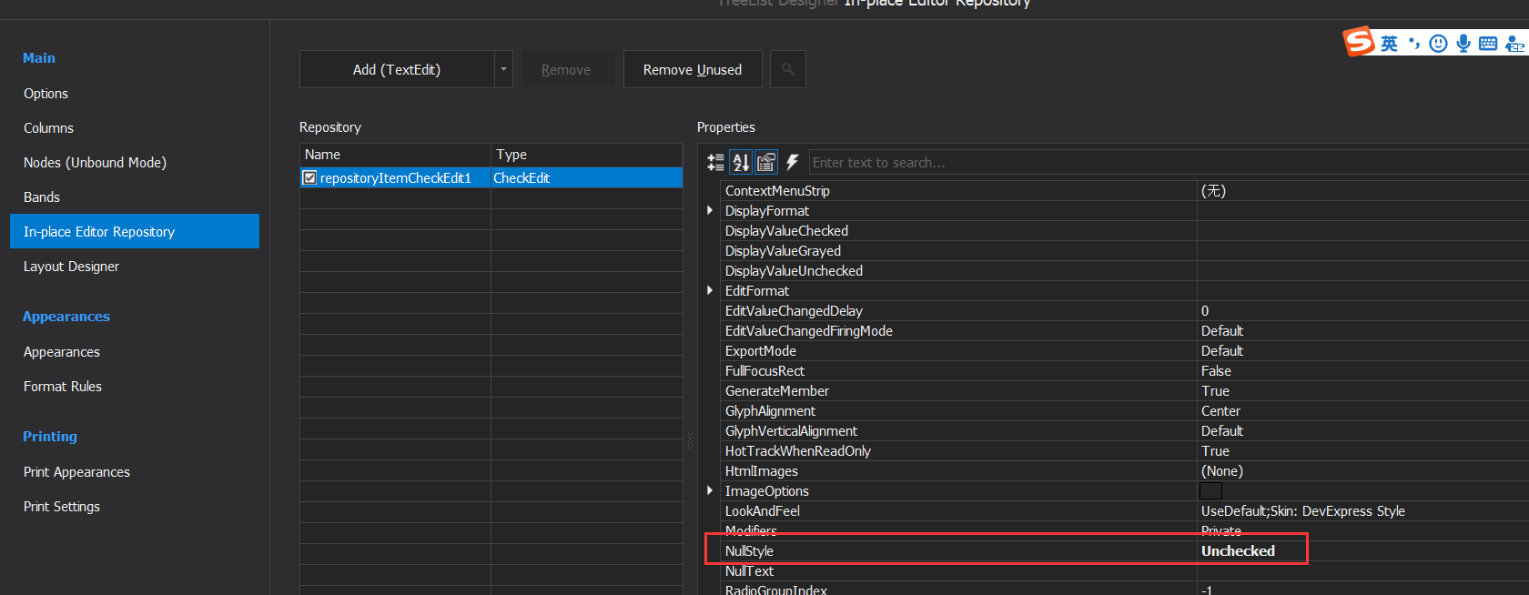 设置TreeList.OptionsView.CheckBoxStyle = Check; //是否显示CheckBox