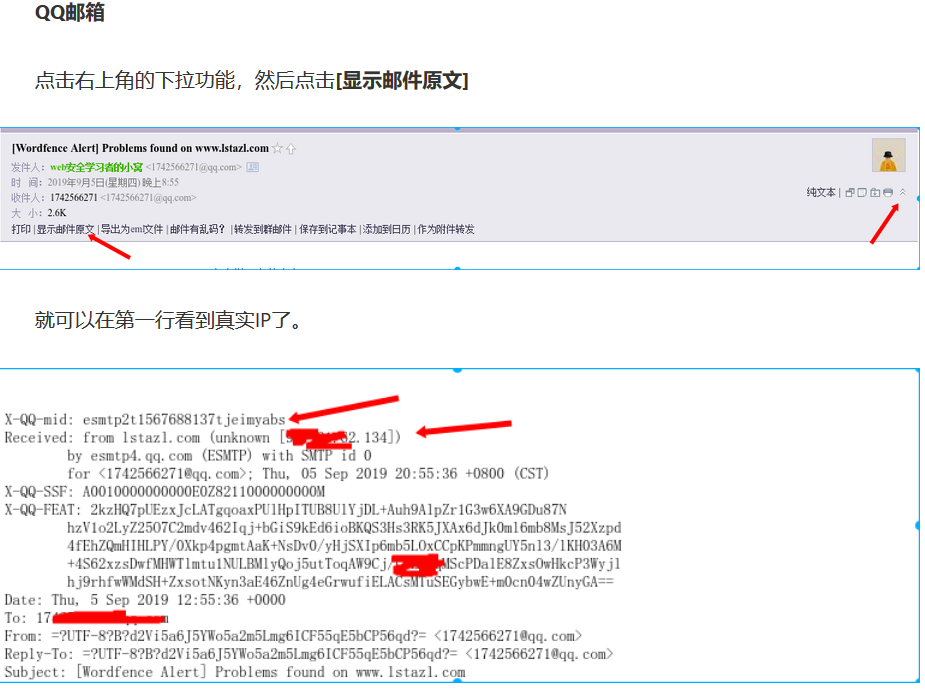 如果不确定是不是真实的,就要结合ping命令,超级ping等第二三种手段,还有在邮件源代码那里除了可以看到ip地址,还可以找到发邮件的域名信息,我们又可以ping这个域名进行IP地址对比了