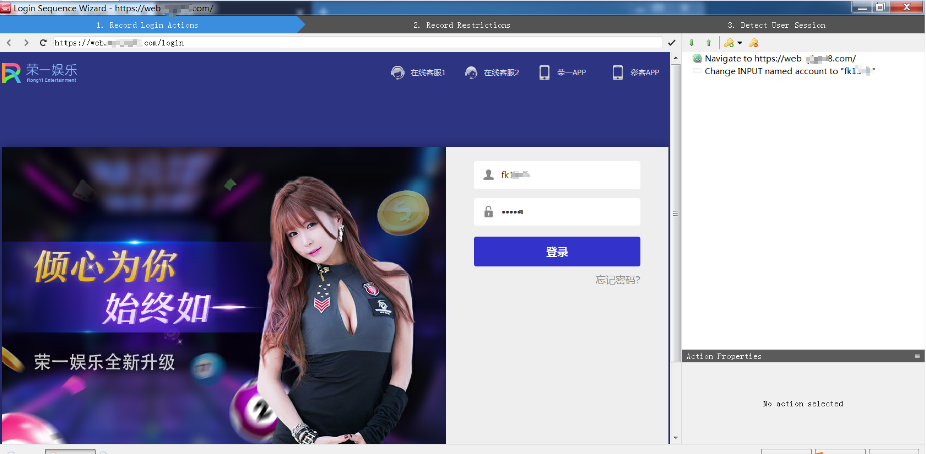 2.录制步骤 比较稳,但是这个测试网址的页面好像是手机端,录制页面显示空白,可能就这原因录制失败,还有如果登录有验证码,就不起作用了