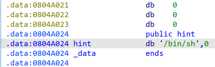 # .data:0804A024 hint db '/bin/sh',0