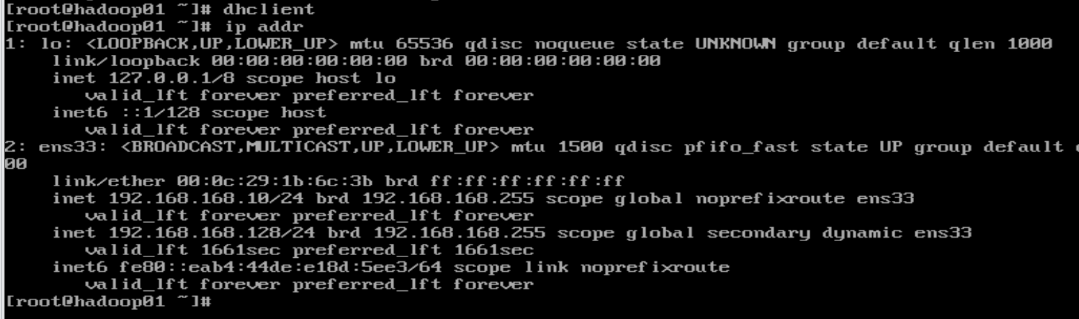1.配置前,让CentOS 7自动获取一个IP地址,使用的命令:dhclient 正常情况下是不会输出任何内容的。