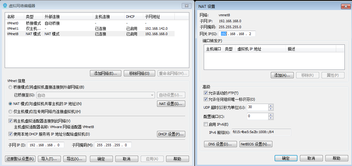 3.查看VMware NAT网络模式的网段是多少。点击VMware虚拟机左上角菜单栏的“编辑”,选择“虚拟网络编辑器”。可以查看到网关是:192.168.168.2