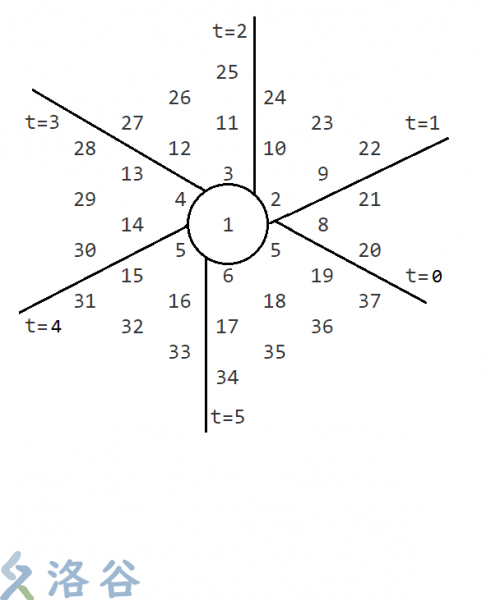 现在要你求第 \(N\) 个生成的六边形的编号
