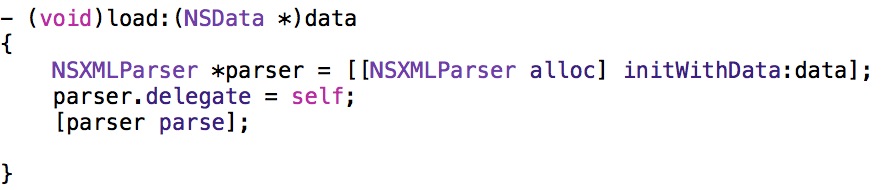 4.编辑XMLParser.h文件,使用NSXMLParserDelegate协议,和添加load方法。