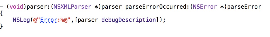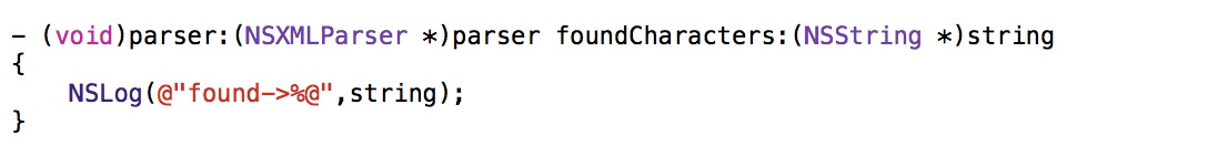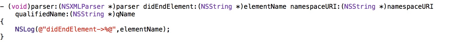 6.继续编辑XMLParser.m文件,添加NSXMLParserDelegate协议调用的方法。