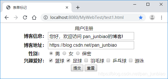 示例:在页面中将“pan_junbiao的博客”指定为作者。