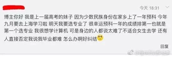 @澈海情深:计算机女生出来说一句,现在干啥都挺难的。学计算机也没有想象中那么恐怖。感兴趣就学呗。