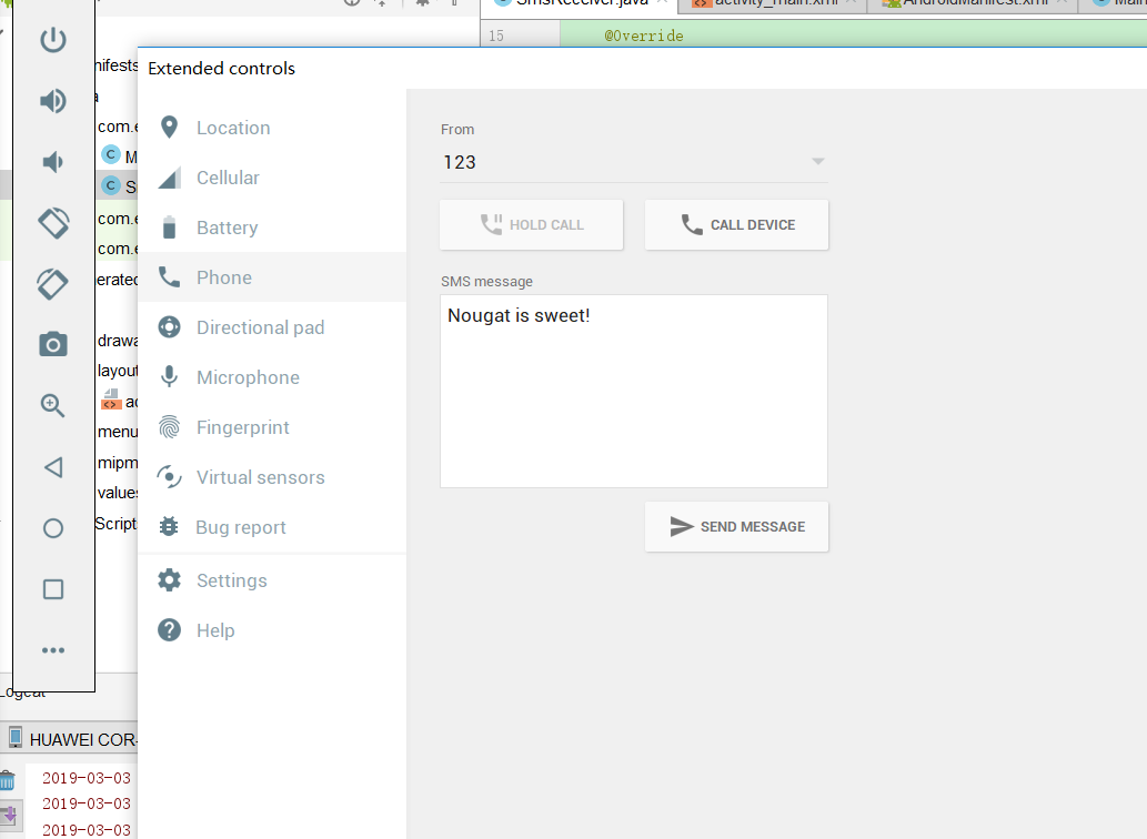 public class SmsReceiver extends BroadcastReceiver { private static final String TAG = "SmsReceiver"; @Override public void onReceive(Context context, Intent intent) { //拿到短信的信息 //短信内容封装在intent中 Bundle bundle = intent.getExtras(); //以pdus为键,取出一个object数组,数组中的每一个元素,都是一条短信 Object[] objects = (Object[]) bundle.get("pdus"); int currentApiVversion = Build.VERSION.SDK_INT; //拿到广播中的所有短信 for (Object object : objects) { //通过pdu来构造短信 SmsMessage sms = SmsMessage.createFromPdu((byte[])object); // if(currentApiVversion >= Build.VERSION_CODES.LOLLIPOP) // sms = SmsMessage.createFromPdu((byte[])object, Telephony.Sms.Intents.SMS_RECEIVED_ACTION); // else // sms = SmsMessage.createFromPdu((byte[])object); Log.e(TAG, "onReceive!!! "); if(sms.getOriginatingAddress().equals("131")){ //阻止其他广播接收者收到这条广播 abortBroadcast(); SmsManager.getDefault().sendTextMessage(sms.getOriginatingAddress(), null, "你是个好人", null, null); } // System.out.println(sms.getMessageBody()); } } }