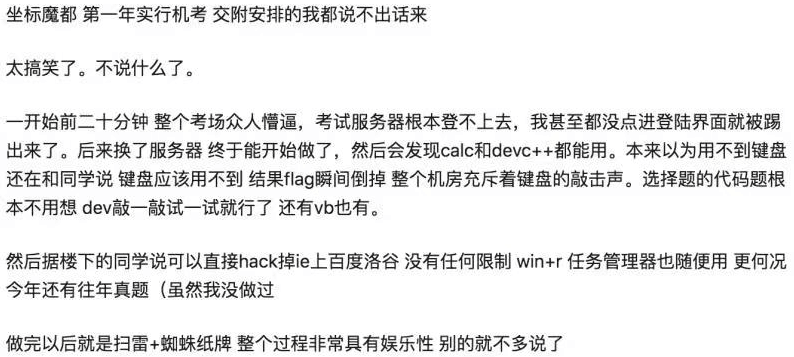 第二,身为堂堂中国计算机协会,居然做不到删掉电脑上的编译软件,禁用\(cmd\)和浏览器这些操作?服务器搞得那么烂,提交就得两分钟……