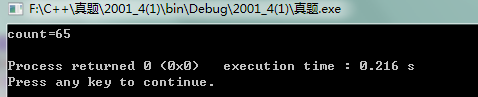 1 #include <stdio.h> 2 #include <stdlib.h> 3 4 static int money[81];//因为10*3+10*5=80;从1-80开始存储 5 6 int main() 7 { 8 int i,j; 9 int count=0;//面值种类个数 10 for(i=1;i<=10;i++){//3分 11 for(j=1;j<=10;j++){//5分 12 money[i*3+j*5]++; 13 } 14 15 } 16 for(i=8;i<=80;i++) 17 if(money[i]) 18 count++; 19 20 printf("count=%d\n",count); 21 return 0; 22 }