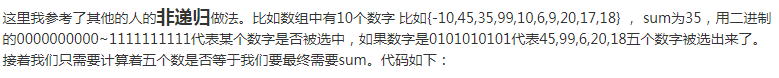 1 #include <stdio.h> 2 #include <stdlib.h> 3 #define MAXN 100 4 5 6 typedef struct book{ 7 char name[20]; 8 int price; 9 }BOOK; 10 11 typedef struct stack{ 12 int top; 13 BOOK booklist[MAXN]; 14 }BOOKSTACK; 15 typedef unsigned long int ulint; 16 void selectbook(BOOK *books,int n,FILE *out); 17 void Push_stack(BOOKSTACK* package,BOOK a_book,int *top ); 18 int S,N;//带了S元 在N本中选取M本 19 20 int main() 21 { 22 FILE *fp,*out; 23 BOOK books[MAXN]; 24 int i; 25 if((fp=fopen("data.txt","r"))==NULL){ 26 printf("Cannot open the %s.\n","data.txt"); 27 exit(0); 28 } 29 30 if((out=fopen("result.txt","w"))==NULL){ 31 printf("Cannot open the %s.\n","result.txt"); 32 exit(0); 33 } 34 35 fscanf(fp,"%d%d",&S,&N); 36 for(i=0;i<N;i++) 37 fscanf(fp,"%s%d",books[i].name,&books[i].price); 38 39 selectbook(books,N,out); 40 fclose(fp); 41 fclose(out); 42 return 0; 43 } 44 45 46 47 /*共有N=5本书那么有00000-11111种选择 */ 48 void Push_stack(BOOKSTACK *package,BOOK a_book,int *top){ 49 package->booklist[(*top)++]=a_book; 50 } 51 52 void Print(BOOKSTACK packge,FILE *out,int *count){ 53 int i; 54 int len=packge.top; 55 fprintf(out,"Choice[%d]:\n",*count); 56 for(i=0;i<len;i++){ 57 fprintf(out,"Book name:%s -- Price:%d\n",packge.booklist[i].name,packge.booklist[i].price); 58 } 59 fprintf(out,"\n"); 60 } 61 62 void selectbook(BOOK *books,int n,FILE *out){ 63 int len=n; 64 ulint bit=1<<len; 65 ulint i,j,sum; 66 int count=0; 67 BOOKSTACK packge;//用于存放选择的书 68 69 for(i=1;i<bit;i++){ 70 //从1循环到2^N 71 sum=0; 72 packge.top=0; 73 for(j=0;j<len;j++){ 74 if((i&1<<j)!=0){ 75 //表示第j位已选 76 sum+=books[j].price; 77 78 Push_stack(&packge,books[j],&packge.top); 79 80 81 } 82 83 } 84 if(sum==S){ 85 count++; 86 Print(packge,out,&count); 87 } 88 } 89 printf("Finshed!\nThe results are displayed in \"result.txt\" .\n"); 90 91 }