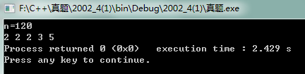 1编程序输出整数n 的全部素数因子。例如: n=120 时,素因子为:2,2,2,3,5
