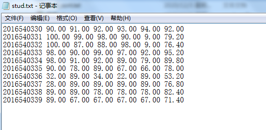 ②自定义一个函数计算平均分,并将学号、各门课的成绩和平均分存放在磁盘文件stud中,用数组指针进行处理;