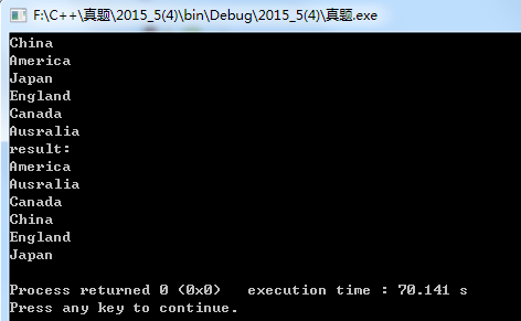 4.请编程实现对6个从键盘输入的国家名字进行字典序输出。要求:在主程序中进行输入,调用排序函数并在主函数内输出结果:函数实现排序。(15 分)