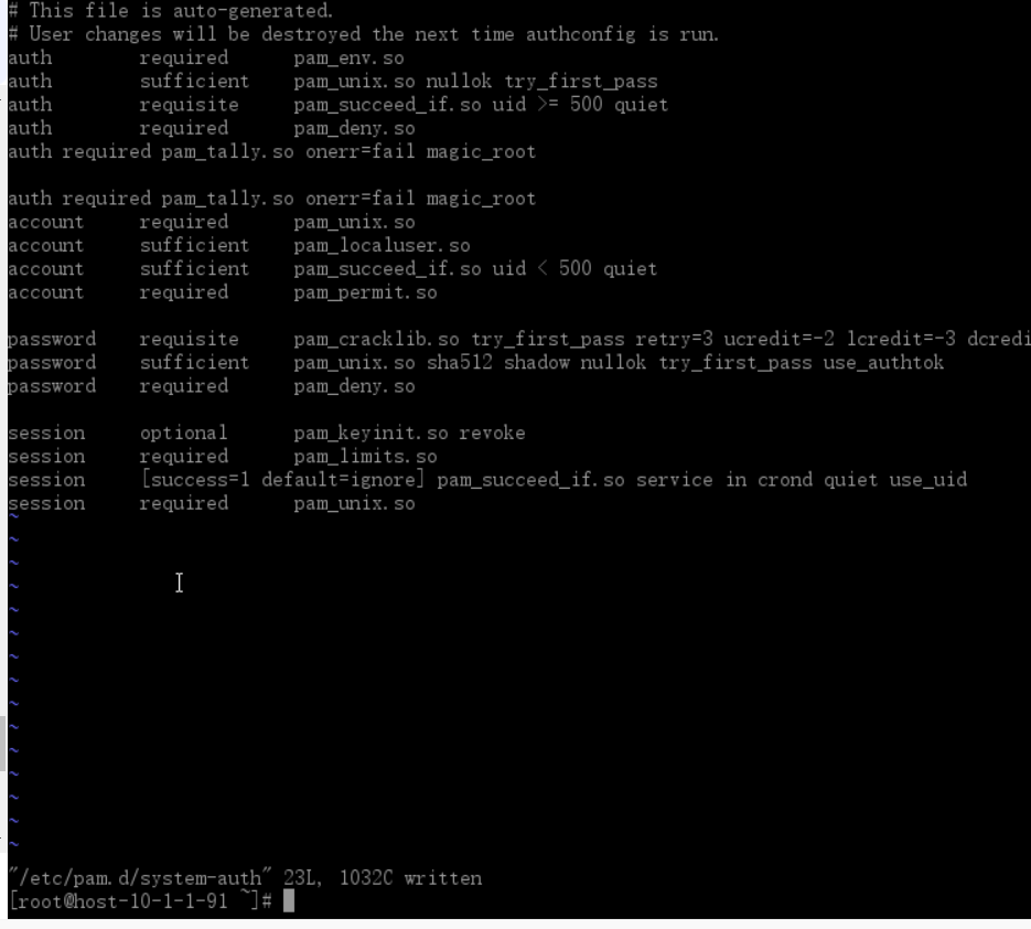 修改/etc/pam.d/system-auth配置在root用户下进行