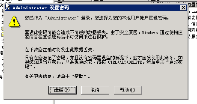 由于远程桌面注销会又会自动连接,所以我们需要先修改当前用户(administrator)的登录密码。