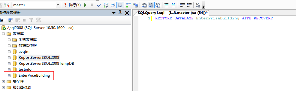 RESTORE DATABASE EnterPriseBuilding WITH RECOVERY