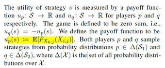 Game定义好了后就要求equilibrium solution了,作者的意思是用α-Rank来求,假如求出了每个算法(策略)选取的对应概率\((p^*,q^*)\),那么加权和就是